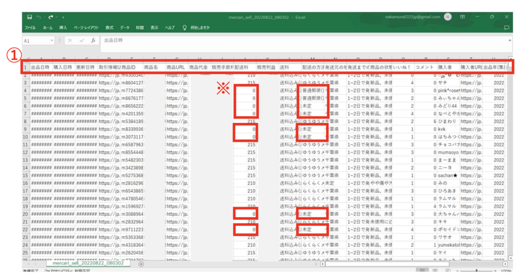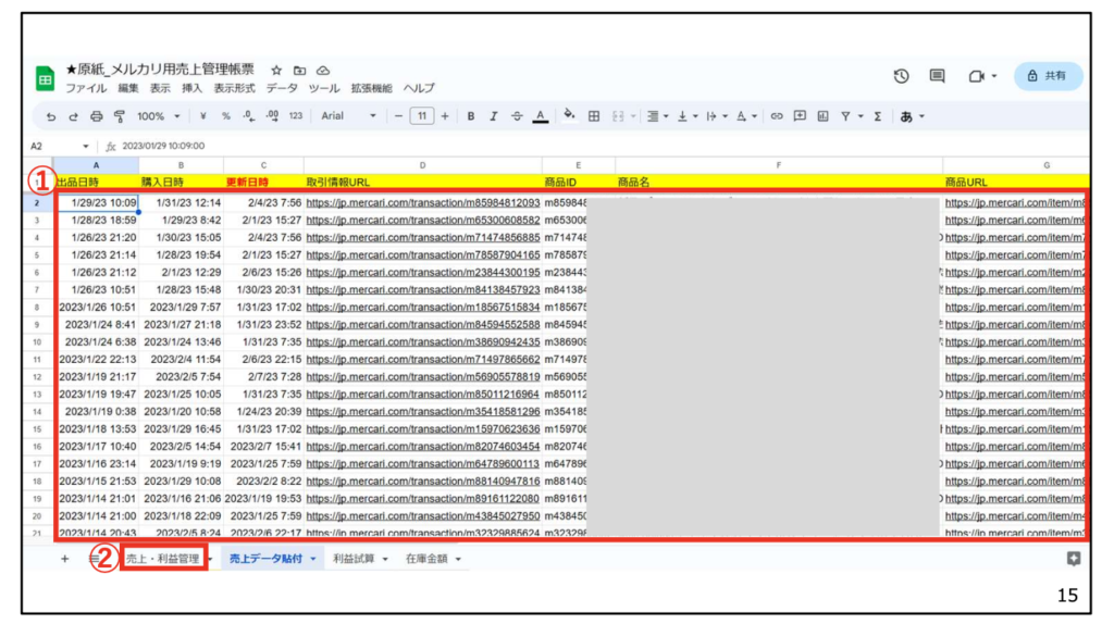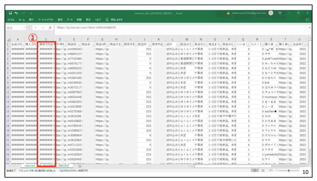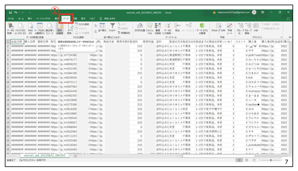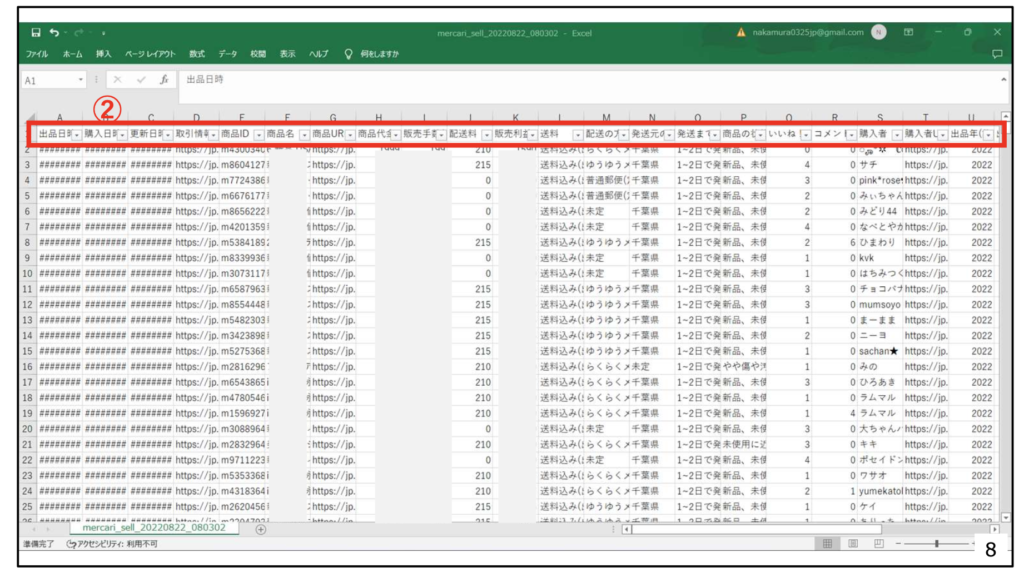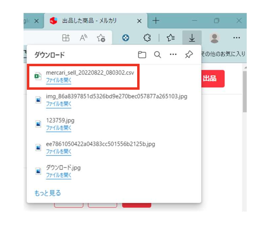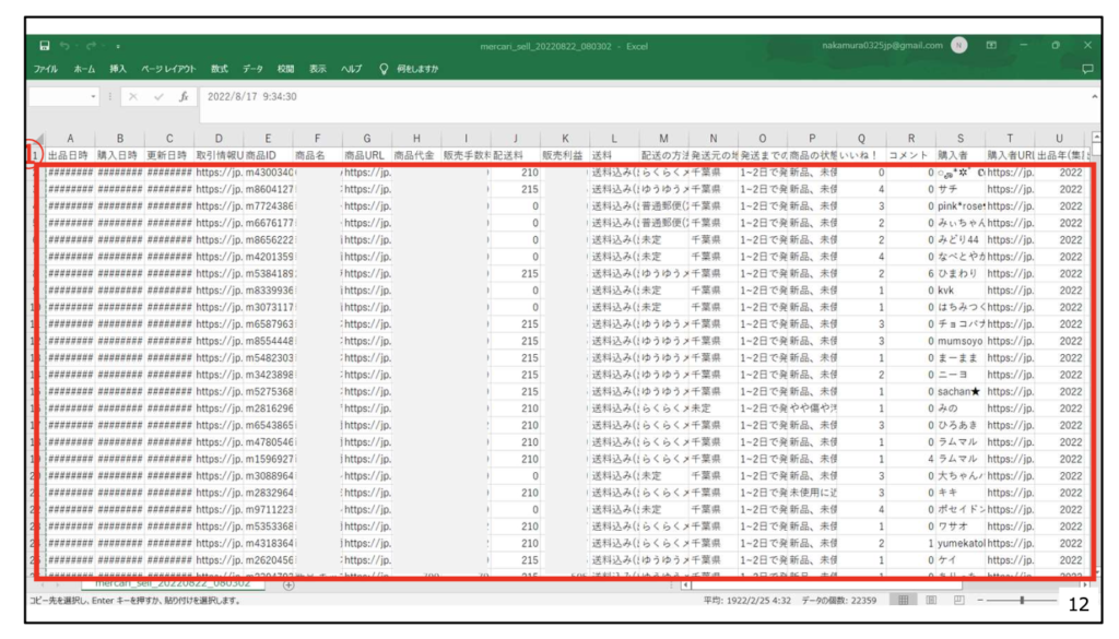 - STEP3取引が完了し売却済となった商品のデータがダウンロードされるので、