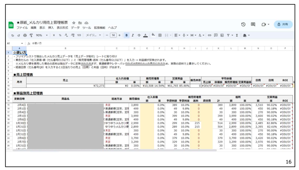 - 帳票(無料配布)とフリマアシストを活用して売上と利益管理を行う方法がわかる