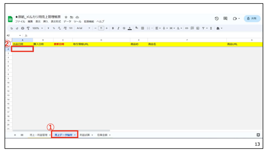 - STEP2売上管理表への貼り付け- ①売上管理表ファイルの2シート目「売上データ貼付」を開く